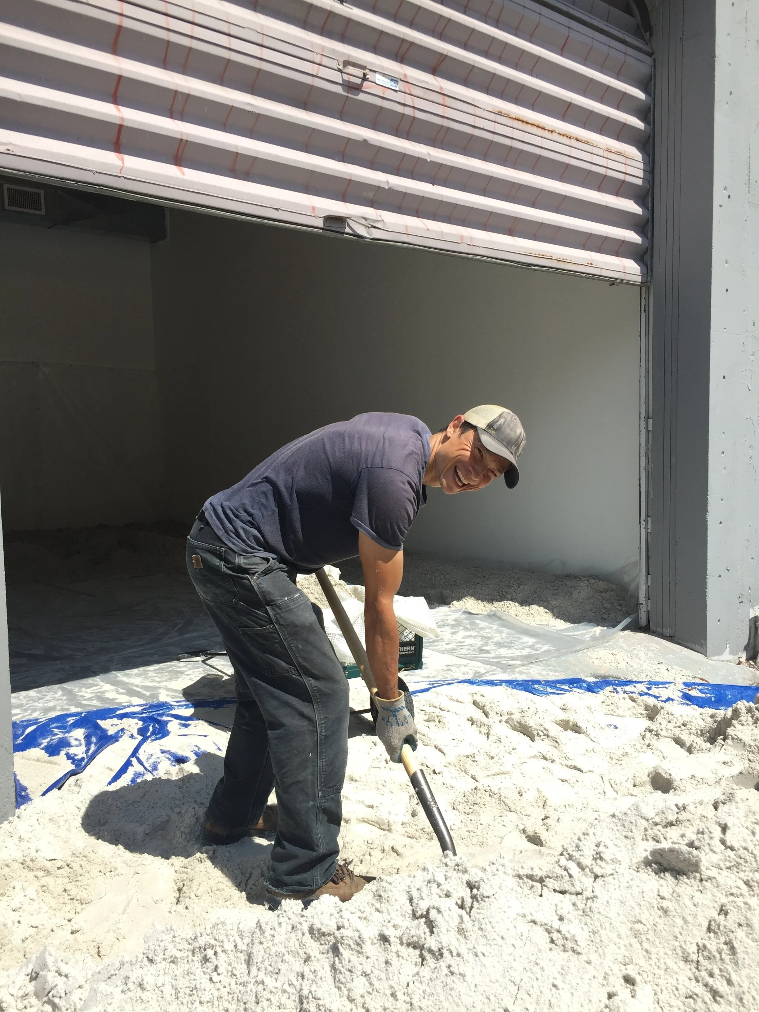 After shoveling 15 tons of sand into the back room of Locust Projects, Namkung flew into the space, created plaster casts from his bodily impressions, suspended them from the ceiling as clouds and projected video of his body in flight onto the sand. For the exhibition: Michael Namkung: Flying Towards the Ground, Locust Projects, Miami, FL, 2015. More info below.